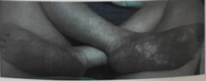 茜茜锐锐爱甜瓜:报告师父,脚开始分化了。有的地方颜色开始变成红色,但是很多白色斑点。可是在脚底和脚趾头下边的位置,颜色竟然往黑紫的方向发展;不是脚底,是脚后跟那里!